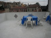 Venezia, sestiere di Castello, in zona Greci, elegante appartamento al terzo ultimo piano di 100 mq con bellissima terrazza al piano di mq 36. Ingresso, soggiorno, cucina a vista, 2 camere, 2 bagni, locale lavanderia predisposto per terzo bagno. Molto luminoso e con bellissima vista. Classe Energetica G.